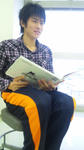 そんなわけで、写真は、稽古の一貫で朗読にチャレンジする、よはりき。